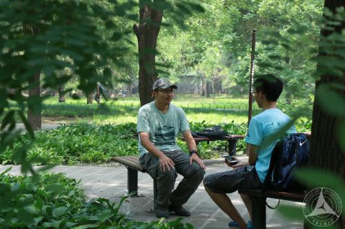 7月9日至10日,北京组来到天坛,实地采访了正在拍摄鸟类的自然摄影师高翔。“这只戴胜最多可以接近到30厘米的距离,它不是很怕人。”高翔一边带领成员们尽可能地靠近野生鸟类,一边向成员们讲述关于鸟类的知识和自身的鸟类摄影经历。接近正午,天气闷热,但在高翔的带领下,成员们都屏气凝神,跟随着高翔的镜头和讲述,走进鸟类世界和鸟类摄影师的生活。