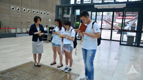 四名同学首先与馆内宣传讲解部的工作人员取得了联系,在博物馆讲解员耐心的讲解下对整个大唐西市博物馆进行了参观,详细了解了博物馆的建设时间、建馆初衷以及展览各部分的历史意义。然后,同学们与指导教师杨倩副教授一同对宣传讲解部的林喆部长进行了访谈,访谈主要围绕馆内的宣传、培训以及布展等工作内容进行。实践期间,实践团对前来馆内参观的外国游客进行了访谈,了解了博物馆丝路文化对外传播的基本情况。最后,同学们在大唐西市博物馆进行问卷发放工作,对调研进行了充分的样本采集工作,对后续的调研报告撰写也提供了材料支撑。