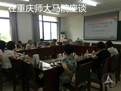 实践团首先与重庆师范大学马克思主义学院、教务处举行座谈会,就如何提升思想政治理论课教育教学等问题进行了深入交流和探讨。同时,就两校马克思主义学院建立更进一步合作关系达成了初步意向。