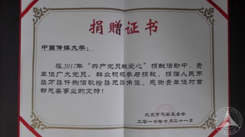 日前,我校“共产党员献爱心”活动圆满结束。本次活动共收到1151名党员(含3名流动党员)、93名入党积极分子、5名群众捐款77897.70元。学校于2017年7月21日将这笔捐款捐献给了北京市慈善协会。