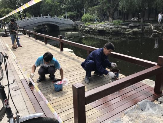 另外,后勤管理处在完成日常后勤保障工作的同时,利用假期对校园环境进行整治。后勤管理处安全管理中心组织员工对钢琴湖、明德湖等全校水系进行集中清洗;物业管理中心员工冒着酷暑,对一号楼、2号楼、动画学院等木栈道进行翻新。此外,利用节能专项资金对学校操场周边、48号楼前后、梆子井公寓、文化广场等区域路灯进行增设和更换。