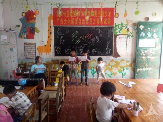 (通讯员 陈莹峰 初晨辉)2017年8月1号,我校“大手拉小手”支教团从北京到南宁,再转公交大巴,一路辗转颠簸终于到达了这个位于大化瑶族自治县龙万移民新村的爱心家园。家园老师和孩子对支教队员的到来表示了热烈的欢迎,并准备了在这个贫困村少见的水果招待支教团的同学们。