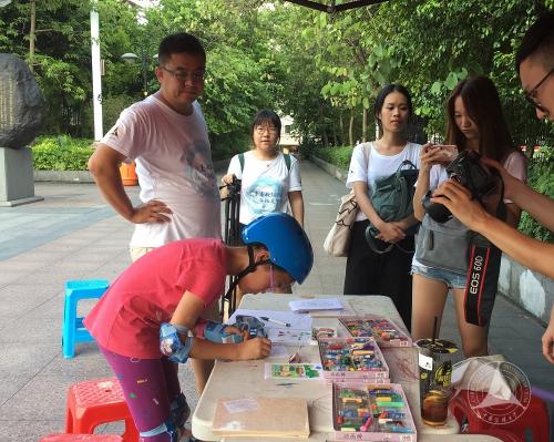 志愿驿站是广州市自2011年亚运会开始保留至今的服务机构,它促进发展了广州志愿服务模式,同时推动青年人才的培养和成长。“团一大广场”志愿驿站就是其中最大、最早的一个志愿驿站。同学们还考察了“东濠涌”志愿驿站的工作情况,六位青年志愿者们在近40度高温天气下仍然为市民们提供便民服务和特色的儿童绘画活动,经过的孩子们来到帐篷下画画、做游戏,一起度过充实的午后。