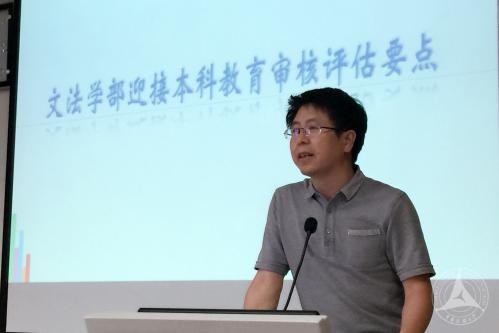 副学部长李有兵就文法学部的具体情况进行说明,解读了《文法学部自评报告》的主要内容。对文法学部的定位与目标、师资队伍、教学资源、培养过程等要点做了简要剖析。他要求全体师生认真对待本科教学任务,全面了解学部的自评报告,做好迎接专家听课和考察的准备。