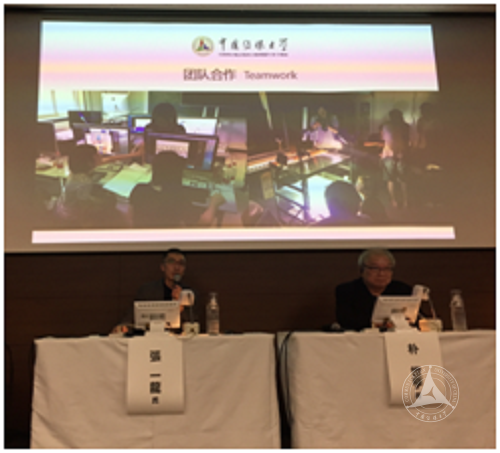 本次论坛分为三个环节,第一环节的主题就是“中日韩学生共同制作(Co-work)动画”,由东京艺术大学副校长、大学院映像研究科教授岡本美津子主持。现场首先播放了由我校艺术学部制作的联合制作(Co-work)回顾短片。然后播放了5部动画短片的全片,中日韩三国制作短片的学生代表上台,我校艺术学部研究生吴昊、郭子豪分享了他们参与活动的细节和感言。最后,三国指导教师代表发言,我校艺术学部教师张一龙发表主题演讲并参与讨论。