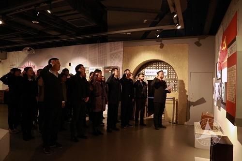 参加主题联学活动的全体党员干部首先到传媒博物馆参观,并在广播分管“延安新华广播电台”展区隆重举行重温入党宣誓活动,全体党员、干部在传媒博物馆馆长潘力带领下面对着鲜红的党旗,举起右手重新宣读入党誓词。