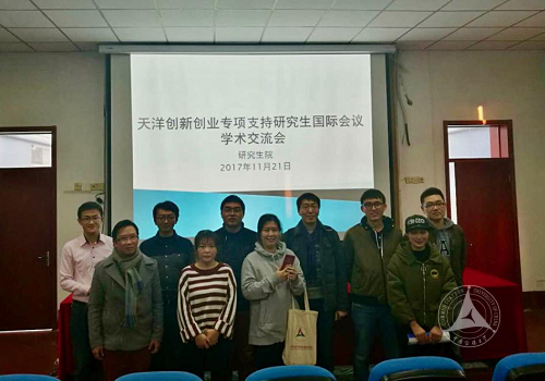 此次会议旨在通过项目学术交流与参会经验分享,能够让更多的研究生同学了解天洋创新创业专项支持的国际会议项目,将专项支持项目惠及更多的研究生同学,从而进一步提升我校研究生的整体科研水平,为研究生创造更优良的科研氛围和条件。