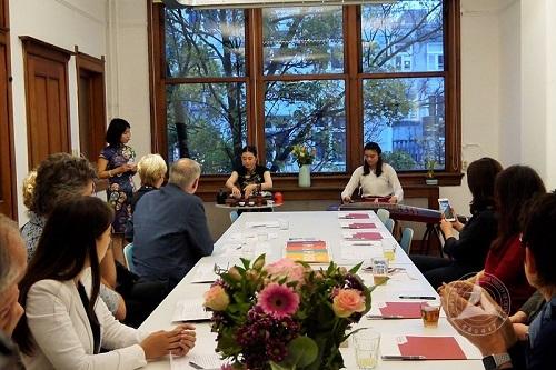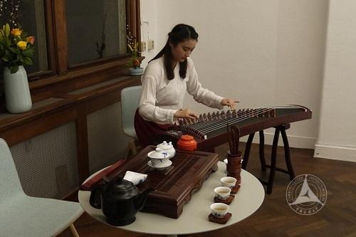 格罗宁根孔院教师王洋、续文嘉和谢竞璠带来古筝配乐茶艺表演