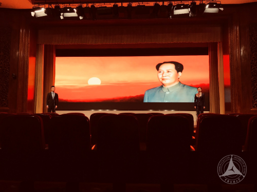 在瞻仰完主席的遗容后,在工作人员的引领下,党员同志们来到了纪念堂的二楼,进入了影片播放厅,毛主席纪念堂宣传教育处副处长李琳琳向同学们生动的介绍了毛主席纪念堂的建成历史和概况,并邀请了两位工作人员为党员同志进行一次 “两学一做”的主题宣讲。纪念堂的两位工作人员声情并茂地讲述了毛主席光辉灿烂的一生,影片《思念的河》以身旁的工作人员视角,回忆了毛主席生前几个不为人知的细节,如手不释卷到生命最后一刻、衣柜中始终珍藏着几件毛岸英的遗物等。改变中国的伟人,酷爱读书的诗人、痛失爱子的慈父,主席身上兼具的这三种形象让在场的党员同志备受震撼,掌声雷动、经久不息。新闻学院研究生专业硕士党支部党员赵亮在看完影像之后心情久久不能平静:“当我听到工作人员整理毛主席的物品时发现毛主席的衣柜底下整整齐齐地摆放着毛岸英生前的衣物。我们无法想象每当毛主席工作到深夜的时候,对自己的儿子是怎样的一种思念,这样的故事感人至深。毛主席是伟大的,但他为了革命事业的牺牲可能是我们永远无法感受到的。作为一名党员,我们应该牢记先辈们的革命精神,全力以赴地投入到新时代的伟大奋斗中去。从我做起,从现在做起。”
