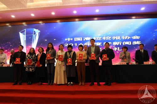 开幕式上还举行了2016年度中国高校校报好新闻颁奖仪式,与会领导为获得2016年度好新闻各类评选一等奖的获奖高校代表颁发了荣誉证书。在此次评选中,中国传媒大学校报申报的6篇作品中有5篇获奖,其中两篇荣获摄影类和微博微信类一等奖,阎玺老师作为获奖高校代表上台领奖。