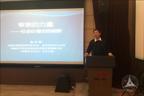 庞井君主任首先从三个自身经历的小故事讲起,分析了在高科技、市场经济、全球化、互联网、社会转型等合力作用下,当今时代人们的精神结构面临诸多的冲突与矛盾,进而紧密结合十九大精神的历史背景,从社会价值论的视野观照“新时代”审美、艺术和文化的深刻命题,并引出本次报告会的主题“审美的力量”。