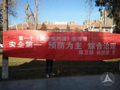 活动最后宣传横幅上写满了师生们的签名,一张张红色消防常识传单也都已经发放到了广大师生的手中。红幅黑字在暖阳照射下显得格外醒目,凸现着本次活动的主题:“安全第一 预防为主 综合治理”。本次签字活动不仅是我校师生对自身安全消防的行为准则做出的承诺,更是我校在宣传《安全生产法》过程中的重要实践,使消防安全观念深入人心,切实提高全校师生的安全意识。通过大力宣传普及安全生产法律法规,全面营造安全生产尊法、学法、守法、用法的浓厚氛围,推进依法治安和安全生产事业再上新台阶,打造安全校园。