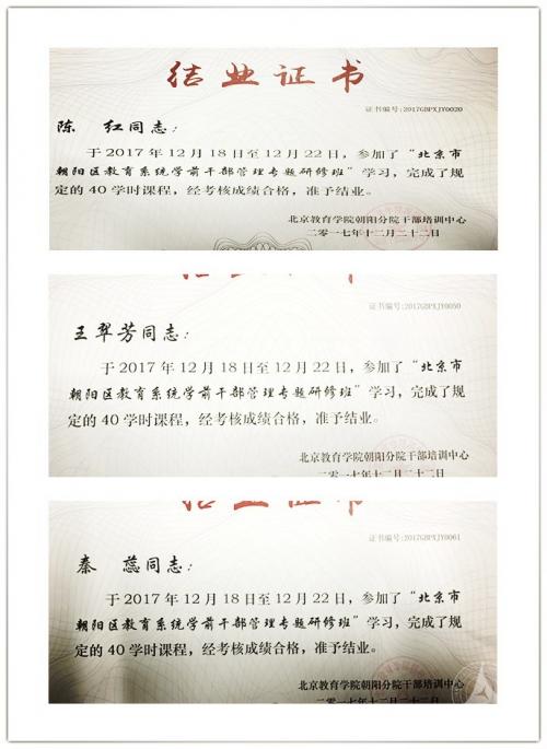 (通讯员 王华南)12月18日—22日,北京市教育学院朝阳分院干部培训中心开展为期5天的“学前干部管理专题研修班”,来自全区的120位学前干部参加了此次培训。我校幼儿园陈红园长、王翠芳副园长、秦蕊老师、松巍老师受邀参加了培训。
