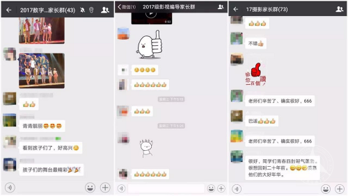 学生家长在微信群中为联欢会点赞