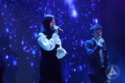 师生合唱《歌唱祖国》把联欢晚会推向高潮,激越豪迈的旋律与歌词,表达了师生们的爱国热情,抒发了老师们教书育人的美好心愿,诠释了同学们积极向上,争做德才兼备传媒人的坚强信念。