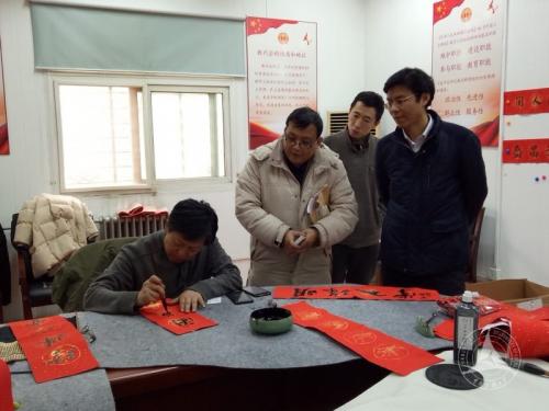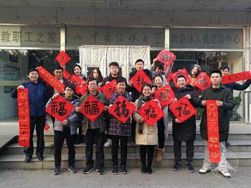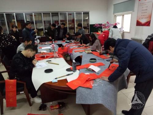 (通讯员:徐徽 刘自川 李孟)无联不成春,有联春更浓。为积极响应十九大精神,坚定文化自信,弘扬中华优秀传统文化,1月15日下午,校工会、中国书写文化研究中心联合举办了“写春联、送祝福”活动,中国书写文化研究中心的师生在教工之家为广大教职工书写春联,送上佳节的诚挚祝福。