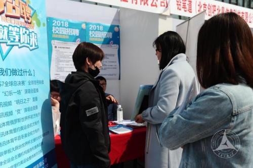 4月10日,广告学院承办的“俊采星驰”2018年春季双选会在大学生活动中心西侧学生广场举行,北京当天的沙尘天气也无法阻止同学们的热情,招聘单位在岗位要求、未来发展前景、福利待遇等方面向同学们进行了详细的介绍,不少同学现场投递了简历。