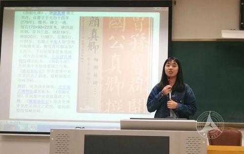 来自理工学部自动化专业的教员胡成森13岁就成为了河南省书法协会会员,他为本期课程做足准备,以甲骨文到秦篆的历史演变脉络为主线,不仅介绍了甲骨文的相关历史知识,还跟大家分享了自己接触书法的契机,书法和写字两个概念之间的差异,还重点以泰山石刻、峄山刻石为脉络,给大家介绍了秦篆的发展历程。最后,他和大家分享了对于练习书法的心态、需要注意的工具和材料、研习书法的目的、执笔方式、坐姿和站姿等相关的个人心得。