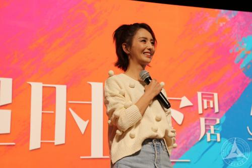 电影放映结束后,佟丽娅与导演苏伦来到台上,与观众进行互动交流。互动环节中的佟丽娅俏皮可爱,大方幽默,现场表演了电影中的倒走效果。面对观众的八卦问题,她也从容回答化解尴尬,亲切地与大家合影拥抱。对于电影的宣传,她说到:“我希望你们走进电影院来看我们的电影,好片子一定要有人看到。”在表演系专业的同学问及“信念感”时,年轻导演苏伦说到:“当你投入这个角色时,你就会相信完完全全都是真的,不要说我在这个角色怎么样,而是在这种情况下我会怎么样。”短短几句引人思考。分享会即将结束时,主持人让佟丽娅现场录制视频发给雷佳音,视频中,观众齐声大喊:“雷佳音演得真好,快点回来跑路演!”引发阵阵笑声。