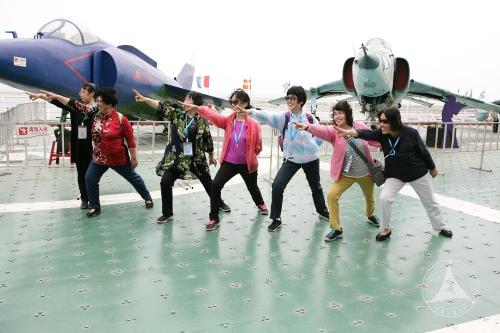 “基辅”号航母是前苏联太平洋舰队的旗舰,曾经是令世界瞩目的海上“巨无霸”,是让西方世界畏惧的“海上杀手”,但实际上她在服役期间并未放过一枪一炮,是一艘象征和平的航母。退役后,我国引进“基辅”号航空母舰,将其改变为观光用途。离退休老党员们登上航母,跟随着讲解员一层一层往上走,参观了当年舰上官兵的生活舱和一些生活用品,参观了擎天柱般的武器装备,如鱼雷、反舰导弹、舰炮以及打击潜艇的武器,还参观了作战指挥室、隐型战斗机等,了解了海上军事作战的基本常识,真可谓大开眼界。大家来到视野开阔的飞行甲板上,凭栏迎风,眺望渤海,联想起中央军委上个月在南海海域举行的海上阅兵,想到中国人民海军的崭新面貌,不由得激发起强国强军的豪迈激情,纷纷举起相机拍照合影留念。