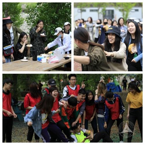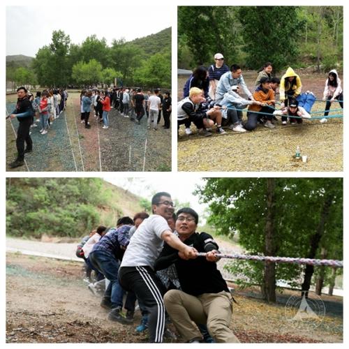 基地培训师为学院学生精心设计了丰富多彩的拓展项目,包括“破冰起航”、“动力圈”、“挑战No.1”、“解手链”、“荆棘取水”、“不倒森林”和“跳大绳”等。在训练师的指导和班主任老师的协助下,同学们分队结组做起了各种趣味盎然的小游戏。离开了城市森林,回归大自然怀抱,寄情于山水,同学们神采飞扬。肩并肩,步调一致奔向“小目标”;手拉手,众人一心走进“新时代”。一阵阵欢声笑语,一片片助威喝彩,回响在山谷丛林之间。于拓展训练间歇,在班主任的组织下,各班还开展了拔河比赛、撕名牌、蒙眼捉迷藏和生日庆生等活动。青山绿水之间,古长城脚下,同学们围坐在一起,品尝户外野餐,共叙同窗情谊。