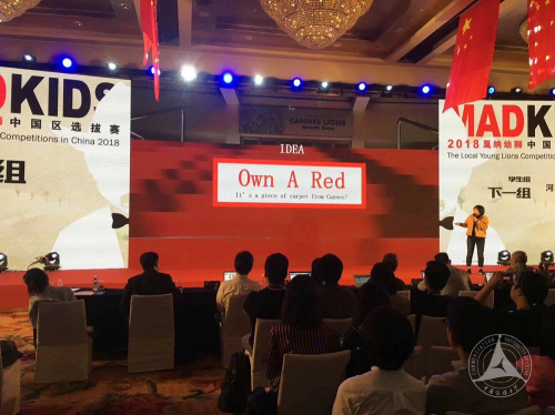 2018年戛纳幼狮中国区选拔赛经过初选后,共有四十余名参赛选手获得现场提案决赛资格,要求使用全英语进行提案,我校赵雨寒同学是其中之一。本次比赛的题目是“戛纳幼狮中国区选拔赛”,希望选手通过平面、影视、营销、公关等手段将戛纳幼狮中国区选拔赛宣传出去。赵雨寒同学的作品主题为“Own a red / 要红”,该作品利用红毯这一广为人知的戛纳元素,创造事件营销,将前一年的戛纳广告节红毯回收利用,裁切成片,邀请参加戛纳的名人们在其上签名,精心装裱,进行拍卖,并随后推出附赠红毯碎片的四月戛纳幼狮特刊,借此让戛纳幼狮中国选拔赛获得更多的曝光,吸引更多的关注。赵雨寒同学的创意新颖独特,可行性高,得到了评委们的一致好评,荣获了第一名的好成绩。