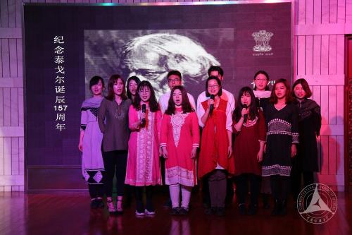 2015级孟加拉语专业学生作为中国大学生代表,在本次活动中演唱泰戈尔创作的孟加拉语经典歌曲《啊,我认识你,外国女士!》,获得印度驻华大使班浩然(Gautam H. Bambawale)以及在场专家、外国友人的一致好评。大使班浩然阁下与孟加拉语专业师生亲切交谈,并高度称赞我校孟加拉语专业的办学成果,表示我校的孟加拉语专业长期以来为中印文化交流输送了大量人才。由人民出版社出版、国内首次完整收录泰戈尔全部孟加拉语作品的《泰戈尔作品全集》,即是在董友忱教授带领下,主要由我校孟加拉语专业毕业生翻译完成的。