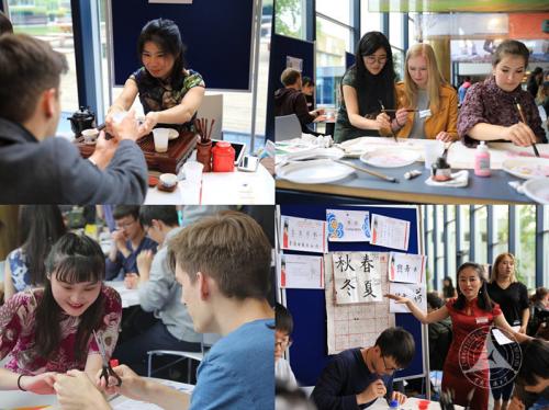下午,我校格罗宁根孔子学院教师和格罗宁根学联的同学们开展了一系列富有中国特色的文化工作坊,包括中国书法、国画、茶艺、剪纸、中国功夫和麻将等,吸引了大批对中国文化感兴趣的友人前来体验,共同感受中国文化的魅力。
