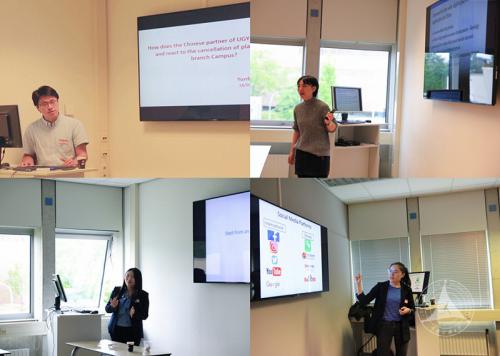 格罗宁根大学中国语言文化项目主任Oliver Moore教授以“格罗宁根和中国:过去、现在以及正在发生的未来(Groningen and China: the past, present and the future’s going-on.)”为主题,介绍了中国在过去几十年的发展,鼓励大家学习中文。同时结合中国社交媒体和无现金社会的中国热点,提出中文学习应当与时俱进。我校格罗宁根孔子学院荷方院长兼格罗宁根大学国际关系政策顾问曹雪飞以她在高等教育国际化平台工作了十几年的经历,和同学们分享了什么是真正的国际化以及格罗宁根大学在推广国际化上作出的努力,同时鼓励在荷中国留学生们走出自己的舒适区,多和其他文化背景的人交流。两位主讲人精彩生动的演讲激发了现场的活跃气氛,在场中外学生就相关热点与主讲人展开了深入的讨论。
