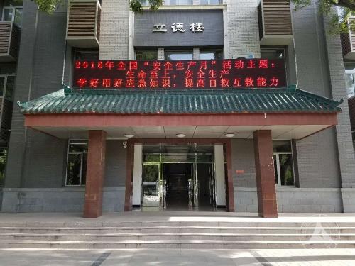 自6月1日以来,我校开展了“安全生产月”系列活动。立德楼、博学楼电子显示屏滚动播放“生命至上、安全发展”、“学好用好应急知识,提高自救互救能力”主题宣传标语,在校园宣传栏和各学生公寓张贴安全宣传挂图150余张,通过微信向广大师生推送两期安全知识,图文并茂,内容包括消防安全、交通安全、防溺水、食品卫生、心理健康、节日安全等,具有较强的针对性、实用性、可操作性。通过生动宣传,普及安全知识,提醒广大师生关注安全,强化师生安全观念,营造良好校园安全文化环境。