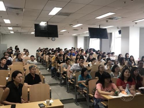 (通讯员 许莹)2018年7月8日,经管学部“2018实践导师系列讲座课”(第二期)在我校博学楼拉开帷幕。公安部金盾影视文化中心党委书记、主任李遂芳,派格传媒董事长、总裁孙健君应邀分别进行主题分享,讲座由副学部长薛永斌主持,商学院2017级全体同学及往届校友200余人参加讲座。