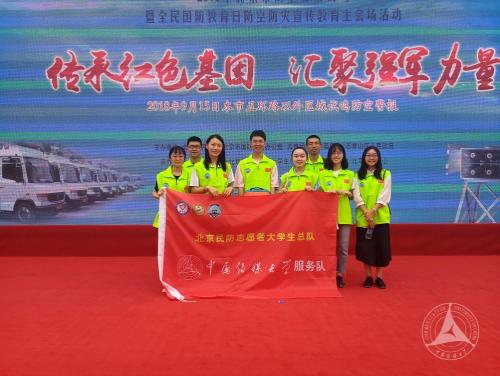 (通讯员 常琳菲 钱彤彤 摄影 张志昂)9月12日下午,由校团委青年志愿者协会及红十字会学生分会12名志愿者组成的民防志愿者服务队应北京市民防局之邀,前往北方工业大学参加2018年北京市防空警报试鸣暨全民国防教育日防空防灾宣传教育主会场活动。此次活动备受瞩目,北京市11所高校的志愿服务团队参加了演练。
