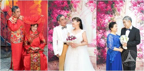 在拍照这一环节结束之后,成员对每一对老人进行了几分钟的简单采访,询问了老人的基本状况和拍摄感想。从采访中得知,大部分的老人新婚时都没有拍过这样完整的、正式的婚纱照,有的人甚至当时只有一张证明结婚的纸,连合照都没有。有一些老人选择在中年之后补拍,同样也有从来没有拍过、这次来到这里第一次拍摄的。而不论是哪种情况,老人们表示,这次来拍摄弥补了当初没有拍摄的遗憾,也纷纷感慨,改革开放之后,经济条件变好,补助政策有方,才让老人们在退休之后衣食无忧,积极建设自己的精神世界,重拾这久违的浪漫。