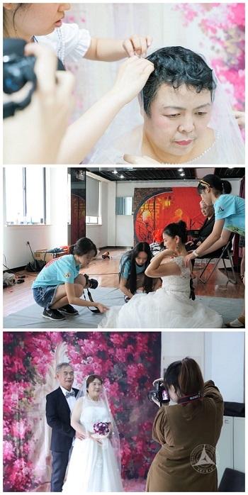 7月5日,“你的婚纱我的梦”北京分队最先行动,奔赴北京垡头北里社区,在社区居委会和居民的积极合作下,开展了为当地花甲老人拍摄婚纱照和唐装婚照的实践活动,旨在通过拍摄婚纱照的形式,关爱社区老年群体,同时,这次活动也让成员们感受了改革开放四十周年带来的巨大变化。