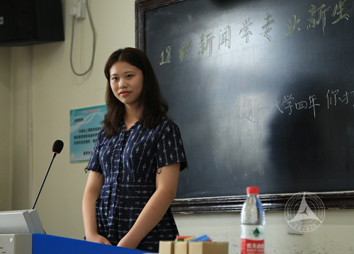 她以担任班干部及在校实习时期的亲身经历为例,向大家分享了自己的感悟,并且以一句话与新同学共勉,“我们无法指望这辈子能一直做让你时时刻刻开心的事情,但总要做一些即使面对无数烦恼和忧虑,也依然愿意慷慨赴之的事情。”