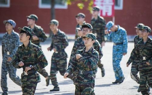 首先训练的依然是教学大纲规定的基本队列内容,各连集合整队,分班训练,内容包括,立正、稍息、整理着装、起立、蹲、坐、看齐、转体、齐步走、摘帽戴帽等基本动作。虽然内容较为基础,但这些基本动作却是磨练同学心性,循序渐进,为后续训练打基础的重要环节。不同的是教官们会根据同学们中学阶段的训练基础,顺序递进并根据所带班的实际情况调整了训练的进度、科目的时间分配和衔接。至下午,各连队有了自己的连口号。伴着行进的口令、收队时的连口号和新学的军歌声,同学们结束了当日的训练。