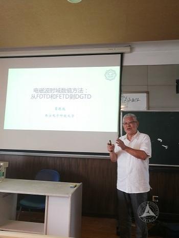 葛德彪教授的讲座题目为《电磁波时域数值方法:从FDTD和FETD到DGTD》。讲座中,葛教授系统阐述了时域有限差分法(FDTD)的发展历史以及改进思想,并着重介绍了时域不连续伽略金法(DGTD)的优点,它同时具有时域有限元算法(FETD)非结构网格剖分和FDTD显式迭代的优点,是一种具备广阔发展前景的电磁计算方法。葛教授的讲座内容引起了众位师生们的浓厚兴趣,大家踊跃提问并与葛教授互动,均得到了耐心解答。通过参加本次讲座,同学们加深了对计算电磁学领域的认知,并对电磁场与微波技术领域的前沿科技有了更深入的了解。
