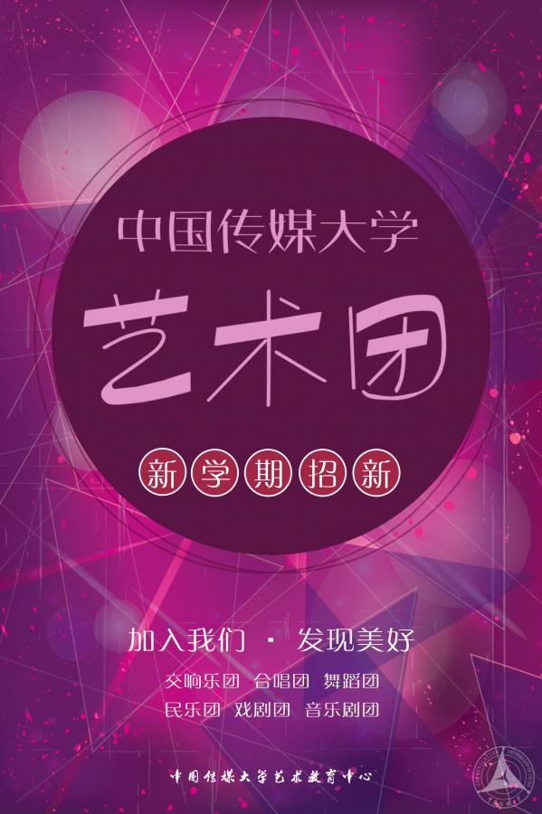中国传媒大学艺术团将于10月8日-10月17日面向全校进行招新,欢迎大家积极参与,具体招新细则如下: