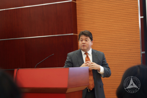首先,美国密苏里大学新闻学院院长FrizCropp致辞,他向2018级新生表示祝贺,并向大家介绍了美国密苏里大学新闻学院,希望新同学们能和来自密苏里的老师们共同努力取得好的成绩。FrizCropp院长还对赴密苏里学习的15、16级同学在学业及实践中的优异表现提出表扬,欢迎大家两年后到密苏里大学学习。