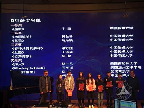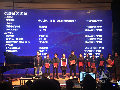 通过严格的第一轮评选,D组“应用类电子音乐”组别国内外共计12首作品进入决赛,我校作品占据8个席位;C组“学术类-与影像结合的多媒体类电子音乐”作品中,我校电音团队唯一上交的作品顺利进入决赛。在严格苛刻的决赛现场打分和国内外专家现场点评后,我校作品在D组决赛中包揽了一、二、三等奖全部奖项,C组参赛作品也收获了第二名的好成绩。