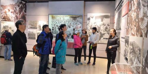 在纪念馆,解说员给大家认真详细的讲解当时的历史背景,狼牙山坐落于河北省保定市易县西部的太行山东麓,因其奇峰林立,峥嵘险峻,状若狼牙而得名。它不仅是一座雄险奇伟,景色秀丽的名山,更是一座英雄的山,八路军五壮士浴血抗击日寇时的舍身跳崖使它闻名于世。先烈们为了主力部队和更多的群众能够转移到安全地带,明知会牺牲,却依然义无反顾,这种舍身奉献的精神令老师们深感震撼。