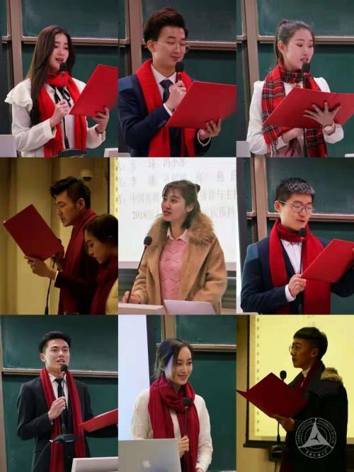 课堂实践活动的最后一个环节,乐琦副教授带领同学们将CCTV《我要上春晚》节目与《读书》相结合,发起了“我要上《读书》”的课堂活动。2018级播音主持艺术本科班八位学生代表朗诵了现代文学名家笔下的本地“春节美食”段落,给充满书香的课堂又注入了一股股暖流。接着,全体同学声情并茂地齐诵了苏轼的《江城子▪密州出猎》,书声朗朗,情感细腻,将课堂气氛推向了最高潮。