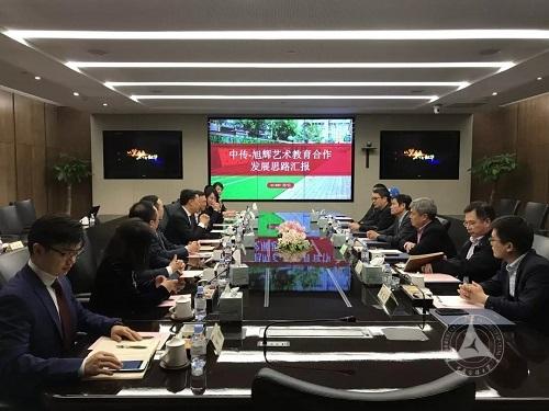 (通讯员 刘文杰)11月7日,我校党委书记陈文申、校长廖祥忠率我校代表团赴旭辉集团上海总部,与旭辉集团董事长林中、副董事长林伟、总裁林峰等进行会谈。廖祥忠校长代表学校与旭辉集团签署合作协议,实施校企合作,共同发展青少年艺术教育。