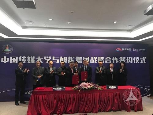 随后,廖祥忠校长与旭辉集团总裁林峰签署了《中传旭辉合作办学协议》。副校长张树庭、国内交流与合作处(校教育基金会秘书处)处长金勇、产业管理办公室(北京中传资产管理有限公司)主任徐宝泉、中旭天下教育集团总裁邹晓东、副总裁候著久等出席了签约仪式。