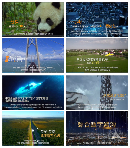 该宣传片立意中国在弥合数字鸿沟方面的责任、担当、举措和成绩,从国内基础设施建设和应用,到参与全球共建、共享这两个大的层面,以具有国际友好形象的代表——熊猫为全片软开篇,涵盖交通、通讯等基础设施建设,超级计算机、北斗通讯卫星和5G等高科技研发,互联网教育、医疗、扶贫攻坚等多个纬度,实现了“讲好中国故事,塑造中国形象”,符合国际传播语态的中国表达,成片在终审环节就受到了中央网信办相关领导和论坛主办方的充分肯定。