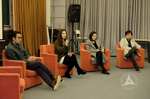 在交流环节中,童画及其团队成员分享了他们的学习经历和实践经验,并就在校生们感兴趣的话题进行了互动交流。在谈到大学期间的创作时,她强调了沟通与合作的重要性,在提及国内外创作理念的区别时,则重点介绍了剧本准备、团队组建和项目进度等相关内容。