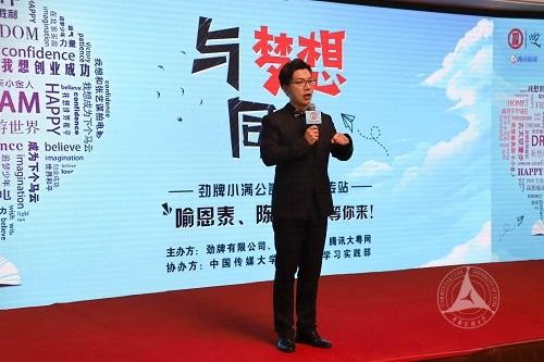(通讯员 陈丽婷 白书好 周旭洋 摄影 张笑图 朱展达)11月12日,由劲牌有限公司、腾讯新闻、腾讯大粤网联合举办,我校学生会承办的“与梦想同行”劲牌小满公益计划中传站在中传国际交流中心M1会议室成功举办。此次活动以“与梦想同行”为主题,邀请到知名主持人陈铭和著名演员喻恩泰到场,与同学们分享了他们对于梦想的理解。