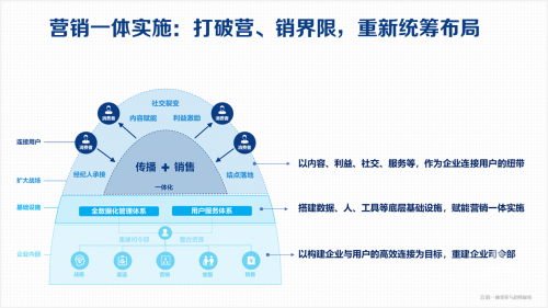 其实施中,强调传播和销售同步进行、相互促进,传播销售化、销售传播化。通过构建用户连接关系,企业在用户增量获取、存量激活、闭环经营方面将获得有力抓手。