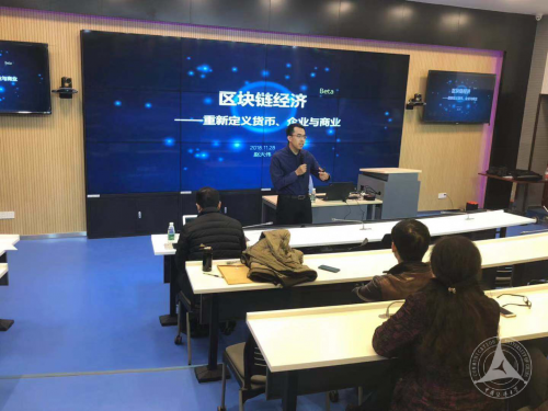 (通讯员 于晗 席明)11月28日,经济管理学院特邀区块链与通证经济学研究者赵大伟老师为经管学院师生开展了题目为“区块链经济——重新定义货币、企业与商业”的专题讲座。赵大伟先生是和君咨询高级合伙人,多家上市公司战略顾问,曾为清华大学、北京大学、上海交通大学等多所高校EMBA讲授互联网新经济主题课程。讲座由经济管理学院孙道军教授主持。