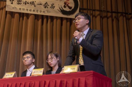 校辩论队首先登场,围绕“时间不可以倒流是人生的幸运/不幸”展开激烈辩论,正反双方巧舌如簧、据理力争,为观众带来了一场精彩纷呈的表演赛,把现场气氛推向了高点。接下来,信智联队与国际传媒教育学院队正式登场。双方就“宁要大城一张床”还是“宁要小城一套房”进行了己方观点的陈述,从多个角度提出了自己的论点。正反双方态度严谨,表达准确,势均力敌,难分伯仲。辩手们用深刻的剖析、多维度的解读以及缜密的语言让现场气氛紧张而活跃,收获了观众的阵阵掌声。